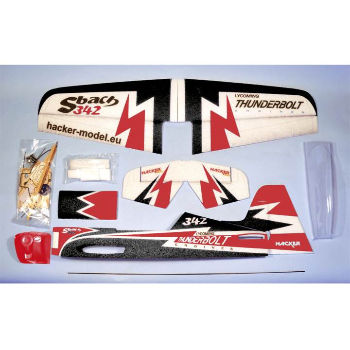 Contents: Coloured Fuselage, Wing and Horizontal Stabilizer, Landing Gear, Wheels, Carbon Struts, Carbon Pushrods, Complete Hardware and Instruction Guide.