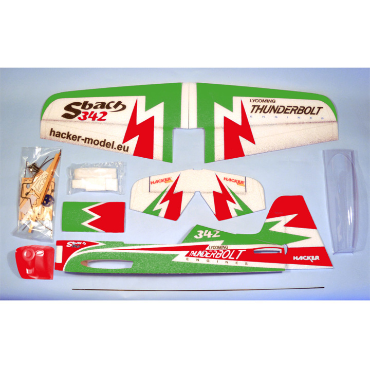 Obsahuje: Trup, křídlo, výškovku a směrovku s kvalitním barevným potiskem, podvozek, kola, uhlíkové výztuhy a táhla, veškeré drobné příslušenství, návod.